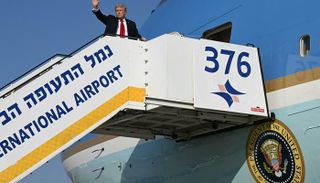 وتبادل ترامب عند سلم الطائرة مع نتنياهو وزوجته والرئيس الإسرائيلي حديثا وديا مطولا وانضم إليهم إيفانكا ترامب وزوجها جاريد كوشنر وعدد من المسؤولين الإسرائيليين، قبل أن يصعد ترامب إلى طائرته.