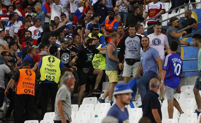 وشهدت نهاية مواجهة إنجلترا أمام روسيا على ملعب "فيلودروم"، والتي حسم التعادل نتيجتها (1-1)، أعمال شغب بين جمهوري الفريقين في مدرجات ملعب اللقاء، فيما حاولت الشرطة التدخل بشكل سريع لمنع تطور الأحداث.