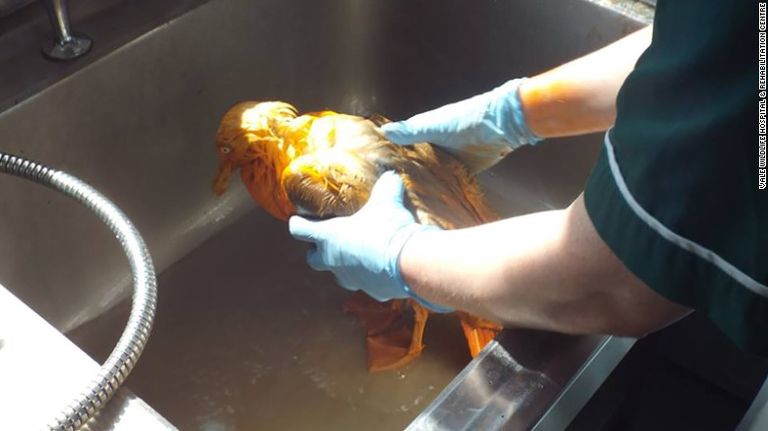 وصل أحد طيور النورس إلى الشهرة في بريطانيا، بعد وقوعه في إناء من الكاري ليتحول لونه إلى البرتقالي.
