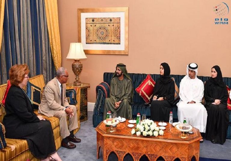 استقبل الشيخ محمد بن راشد آل مكتوم نائب رئيس الدولة رئيس مجلس الوزراء حاكم دبي بحضور الشيخ مكتوم بن محمد بن راشد آل مكتوم نائب حاكم دبي تشارلز بولدن مدير الإدارة الوطنية للملاحة الجوية والفضاء الأمريكية " ناسا" والوفد المرافق.