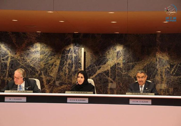 وقالت إنه حينما أصبح الاهتمام بالبيئة تحديا عالميا يفرض علينا توحيد الجهود للبحث عن حلول بديلة تمكن الإنسان من استثمار البيئة واستغلال مواردها بشكل سليم وإعادة التوازن للمنظومات البيئية المتدهورة قصد القضاء على المشكلات البيئية ..استضافت الامارات الوكالة الدولية للطاقة المتجددة وهي المرة الأولى التي تقوم وكالة دولية باختيار مدينة في منطقة الشرق الأوسط كمقر لها حيث تحتضن "مدينة مصدر" أول مدينة في العالم خالية من الكربون ومن النفايات والمعتمدة بالكامل على الطاقة المتجددة مقر الوكالة الرئيسي ..مؤكدة ان الامارات كانت سباقة في هذا المجال.