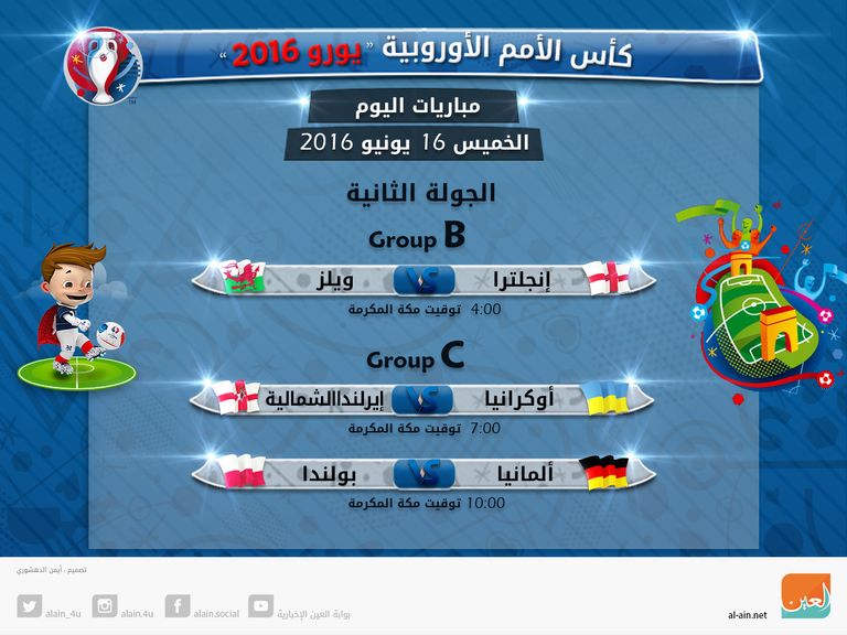 إنفوجراف.. مباريات اليوم السابع ليورو 2016