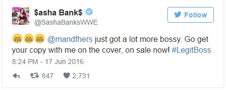 وقامت مجلةMuscle & Fitness Hers في عدد يوليو وأغسطس بالاحتفاء بساشا بانكس، حيث نشرت على غلافها بجانب صورتها، عنوانا ً"نجمة مؤسسة WWE ساشا بانكس.. الخطة التي جعلتها تبدو بهذا الشكل الممتاز".