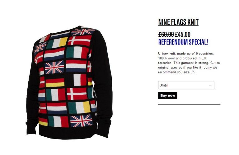 وكان المؤيدون لبقاء بريطانيا بالاتحاد الأوروبي، حريصون للحصول على المقتنيات، قبل يوم الخميس المقبل، وانتشرت 12 نوعًا وشكلًا من هذا الزي ارتدها البعض خلال الأسابيع الماضية.