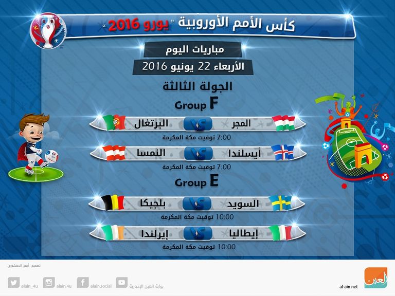 إنفوجراف.. مباريات اليوم الـ 13 في يورو 2016