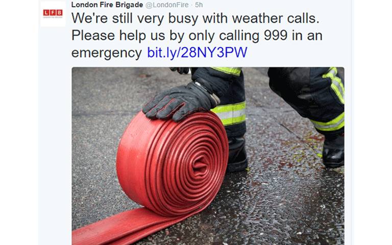 كما نشرت الصفحة الرسمية لفوج إطفاء لندن تغريدة تطلب من المستخدمين مساعدتهم بالاتصال على رقم 999 في حالة مواجهة أي طوارئ.