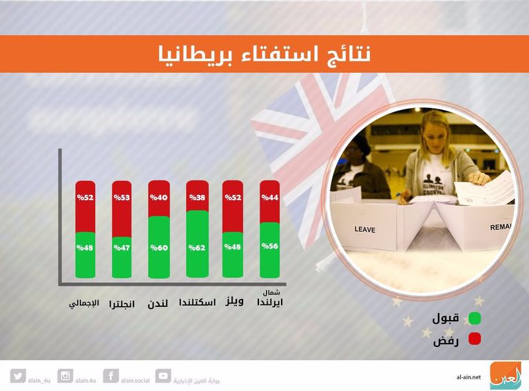"العين" ترصد بالأرقام وعبر الإنفوجراف نتائج الاستفتاء على خروج بريطانيا من الاتحاد الأوروبي