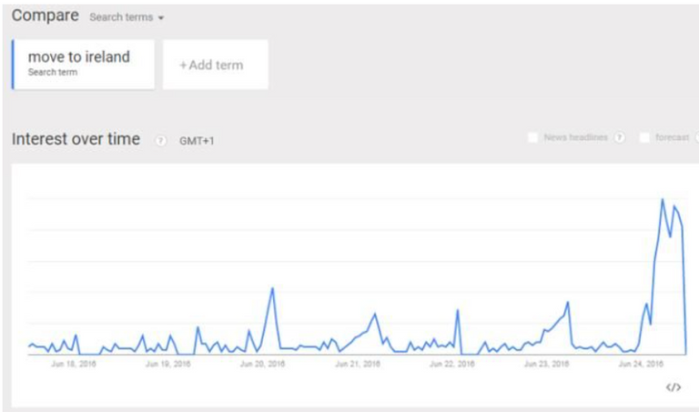 وشهد مصطلح "Move to Ireland" أي "الانتقال إلى أيرلندا"، زيادة كبيرة من جانب متصفحي الإنترنت في بريطانيا، خاصة بين السكان في أيرلندا الشمالية.