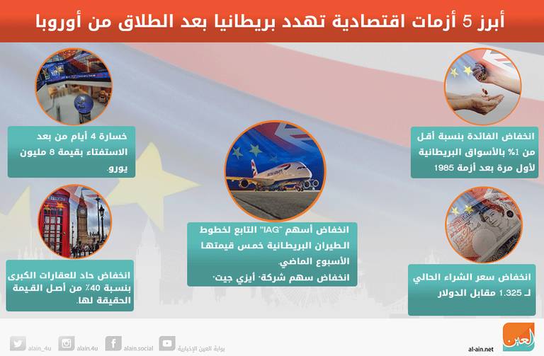إنفوجراف.. 5 أزمات اقتصادية تهدد بريطانيا بعد طلاقها من أوروبا