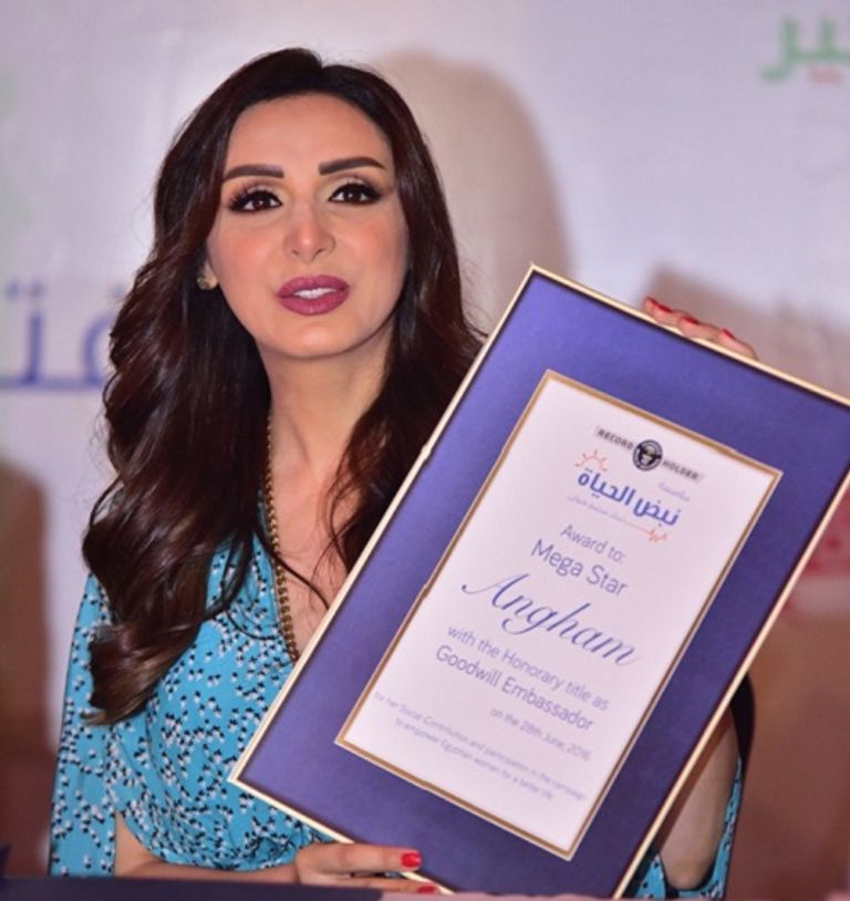 بالصور.. تنصيب المطربة "أنغام" سفيرة للخير