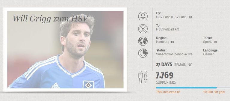 وتهدف الحملة إلى توفير 10.000 موقع على العريضة من أجل إقناع مسؤولي هامبورج بضمه خلال المركاتو الصيفي الحالي.