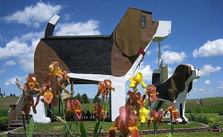 هذا المنزل المجنون لمحبي الكلاب في ولاية أيداهو الأمريكية، يتكون من غرف النوم الموضوعة في فم الكلب، عندما تدخل إليه تُفاجأ بأن ساكنيه قد حوّلوا الكثير من الأثاث على شكل إكسسوارات مفضلة للكلاب، كاستخدامهم لوسائد على شكل عظمة "وي" الوجبة المفضلة للكلاب.