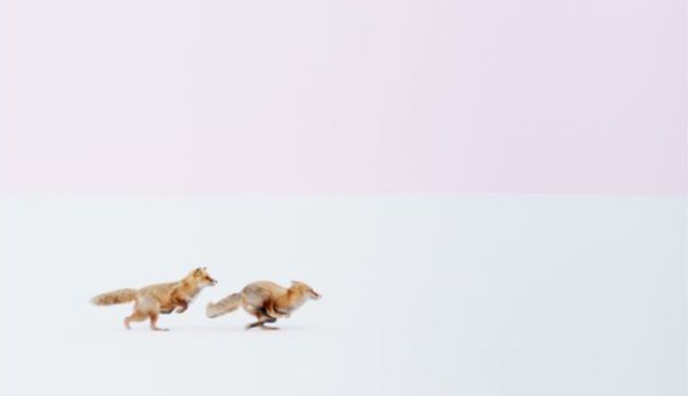 2- فاز هيروكي إنوي بالمركز الأول في فئة الطبيعة بصورة لثعلبين يعدوان على الثلوج في هوكايدو باليابان.