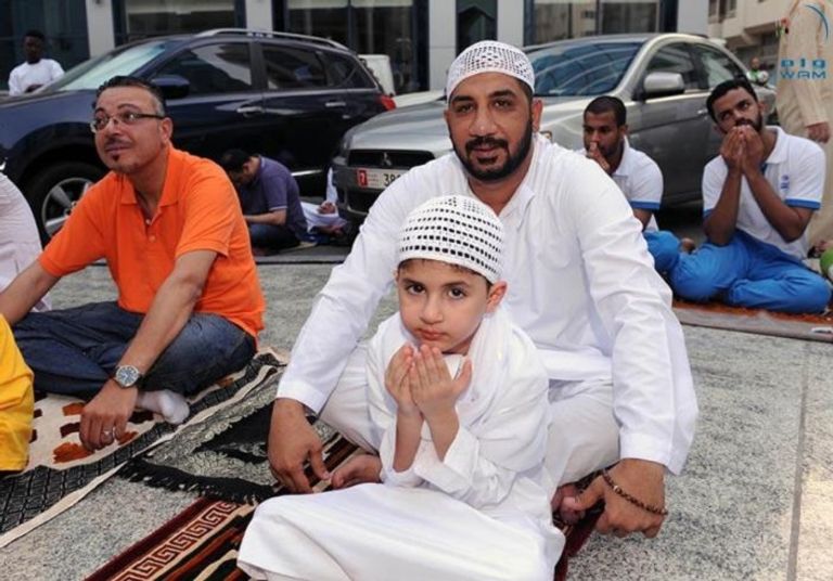 وجوه عديدة لجنسيات مختلفة تزاحمت في المساجد في بوتقة واحدة تعكس الرحابة التي يتمتع بها مجتمع الإمارات وانفتاحه والحرص على مشاركة الجميع السعادة والفرح. يتلون العيد في الإمارات بألوان الأصالة والمعاصرة وتكسوه فرحة الأطفال فالتقاليد محفورة بالذاكرة ينقلها الأباء إلى الأبناء الذين ارتدوا ملابسهم التقليدية وتنتفخ جيوبهم بالحلوى والعيدية.