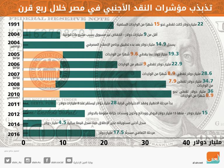 إنفوجراف.. أزمة احتياطيات النقد الأجنبي في مصر عمرها ربع قرن وتتصاعد