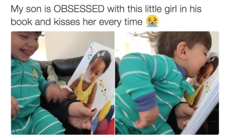 3- البعيد عن العين ليس بالضرورة بعيدًا عن القلب، فهذا الطفل لن يمنع الورق أن يقف حائلًا بينه وبين تقبيله دائمًا لهذه الطفلة الصغيرة.