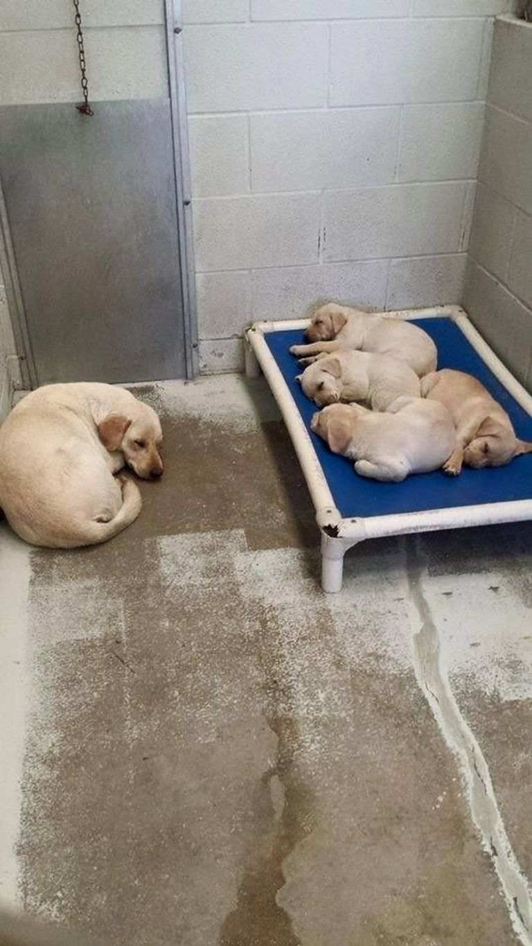 5- التضحية فطرة في كل الكائنات.. هذه الكلبة لم تمانع ف النوم على الأرض في مقابل أن ينعم صغارها بنومة مريحة على السرير.