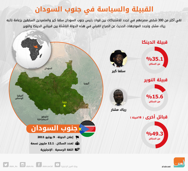 إنفوجراف.. تعرف على الخريطة القبلية لجنوب السودان