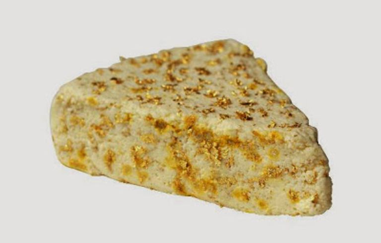 10- الجبنة الذهبية: قامت الشركة البريطانية، كلاوس، بصناعة جبنة الذهبية الفاخرة، وتبلغ تكلفتها 95 دولارًا لكل 100 جرام.