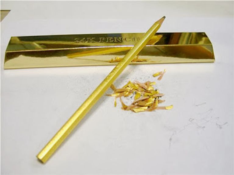4- قلم رصاص: قام بتصميمه الكوري، دايسانج كيم، وهو قلم عادي لكنه مغطى بطبقة رقيقة من الذهب 24 قيراطًا، ويبلغ سعر القطعة الواحدة 20 دولارًا.