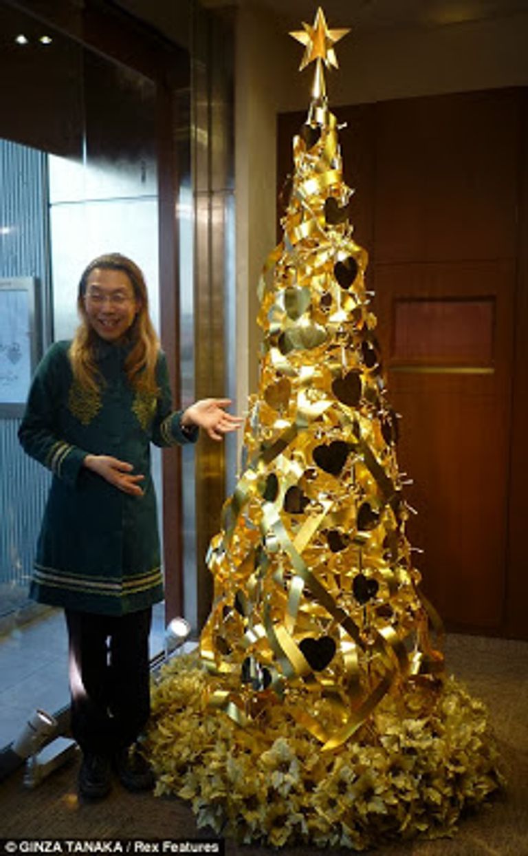 8- شجرة الميلاد الذهبية: يبلغ طول الشجرة 2.5 متر، وتصل قيمتها مليوني دولار.