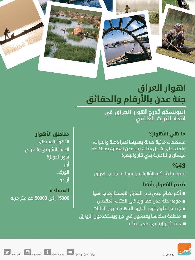 ترصد بوابة العين الإخبارية في الإنفوجراف التالي، أبرز ما تتميز به منطقة الأهوار العراقية.