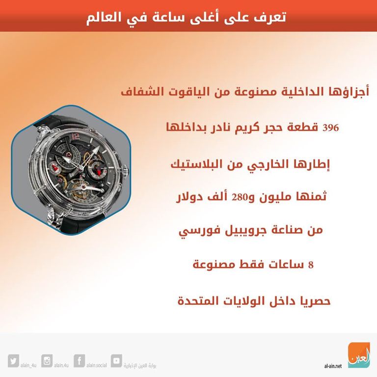 بوابة العين ترصد لكم في هذا الإنفوجراف أهم ما يميز أغلى ساعة في العالم والذي يبلغ سعرها 1,28 مليون دولار