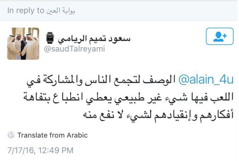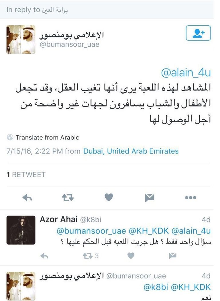 وصوت 45% من المستخدمين على الإجابة بأنها تشكل خطرًا أمنيًا على البلد، بينما رأى 35% أنها مجرد لعبة، في حين أجاب 16% بالنفي، وردّ 4% بأنها تعدٍ على الدولة.