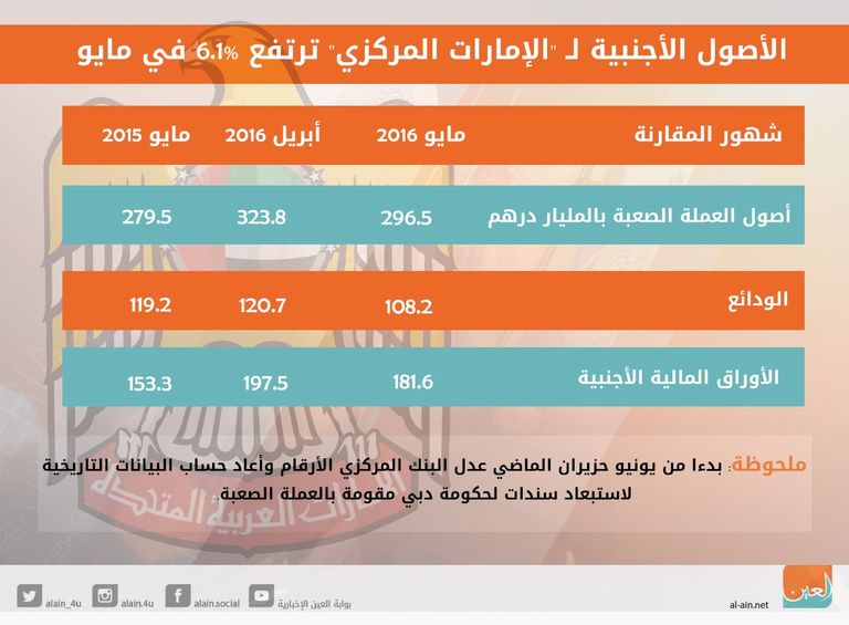 إنفوجراف.. الأصول الأجنبية لـ "الإمارات المركزي" ترتفع 6.1% في مايو