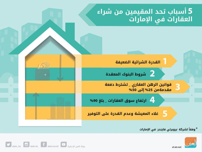 إنفوجراف.. 5 أسباب وراء عزوف المقيمين عن شراء العقارات في الإمارات