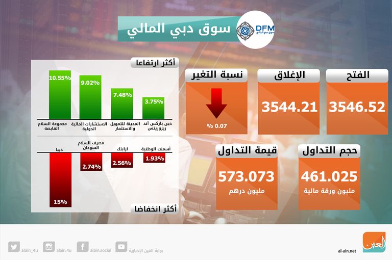 "دبى" يفقد 0.07%.. و"أبوظبى" 0.49%