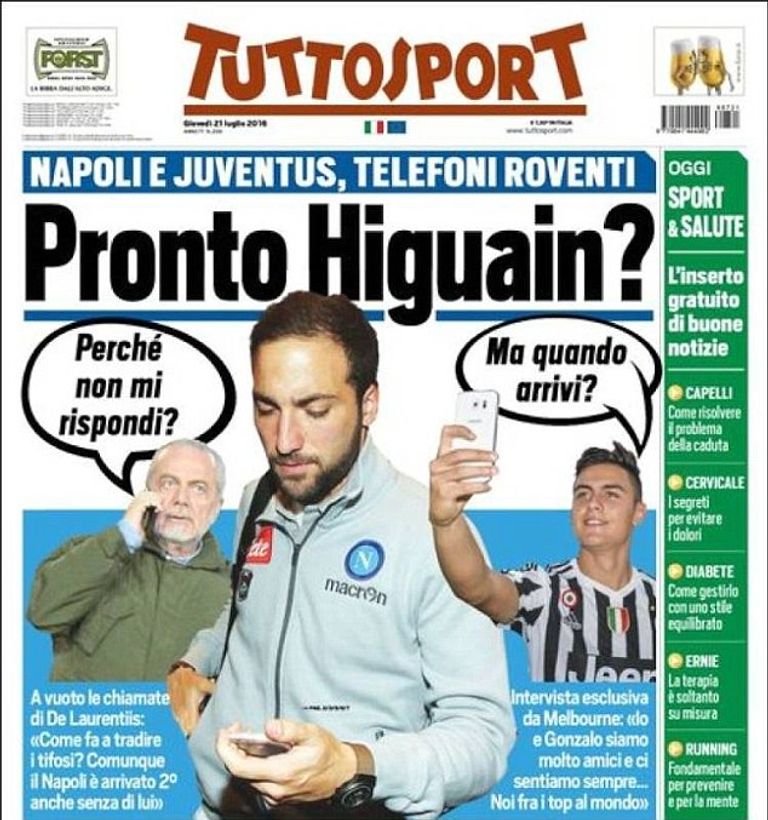 تسبب جونزالو هيجواين، لاعب نابولي الإيطالي، في أزمة بين ناديه وصحيفة "توتو سبورت" الإيطالية، التي نشرت عن وجود مشاكل بين اللاعب الأرجنتيني والنادي، وأن هيجواين يتجاهل مكالمات أوريليو دي لورينتس رئيس النادي، بسبب رغبته في الرحيل.
