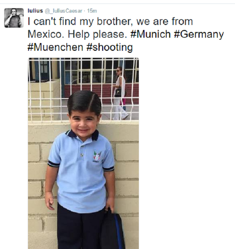 وألقت بعض التغريدات الضوء على جوانب إنسانية مؤلمة من الحادث؛ حيث تواجدت مجموعة من السياح المكسيكيين داخل مركز أوليمبيا التجاري في ميونيخ، ووسط حالة الهرج والمرج التي وقعت عقب إطلاق النار فقد البعض عددًا من أحبائهم دون أن يعرفوا مصيرهم.