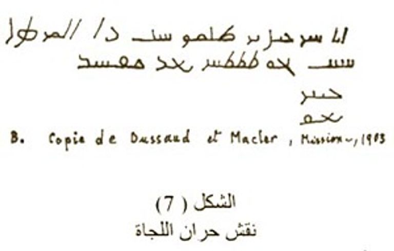 النص غير مؤرخ، نشره ليتمان في القرن السادس الميلادي. وجدت هذه الكتابة منقوشة على حجر بازلتي 62×31سم في أم الجمال في المبنى الذي يسمى الكنيسة المزدوجة مستعملاً كحجر غشيم، وجد في المنطقة.