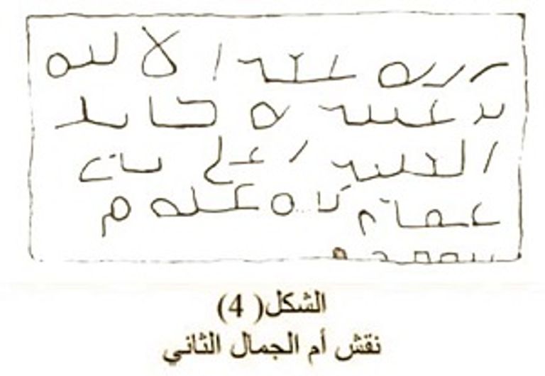 هذه الكتابة غير مؤرخة، ولكن نستطيع تحديد زمنها في الربع الأخير من القرن الثالث الميلادي، وتبدو فيها ملامح الخط العربي القديم، وفيه كلمات عربية. وجذيمة الأبرش هو أحد ملوك الحيرة التنّوخيين الذين حاربوا زنوبيا ملكة تدمر. وتقع أم الجمال في جنوبي مدينة بصرى الشام على بعد 25 كم.