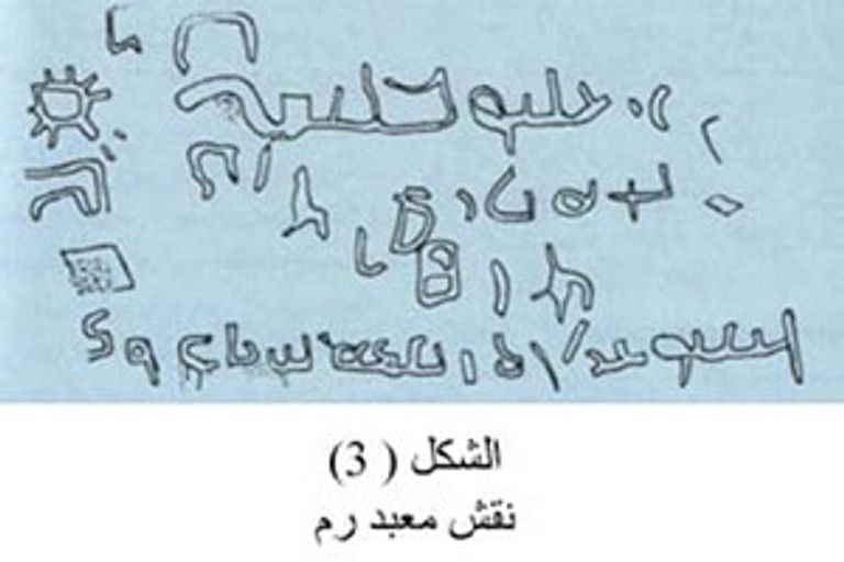 يقع جبل رم على بعد 40كم شرقي العقبة، وقد أجرى التنقيب في المعبد ساﭭيناك وهورسفيلدونشرا صورة ومستنسخ النص دون أن يقرأه، وقد عني الأستاذ جروهمان في كتابه الأخير سنة 1971م بملاحظة تطور حروف النص من الناحية الباليوغرافية.