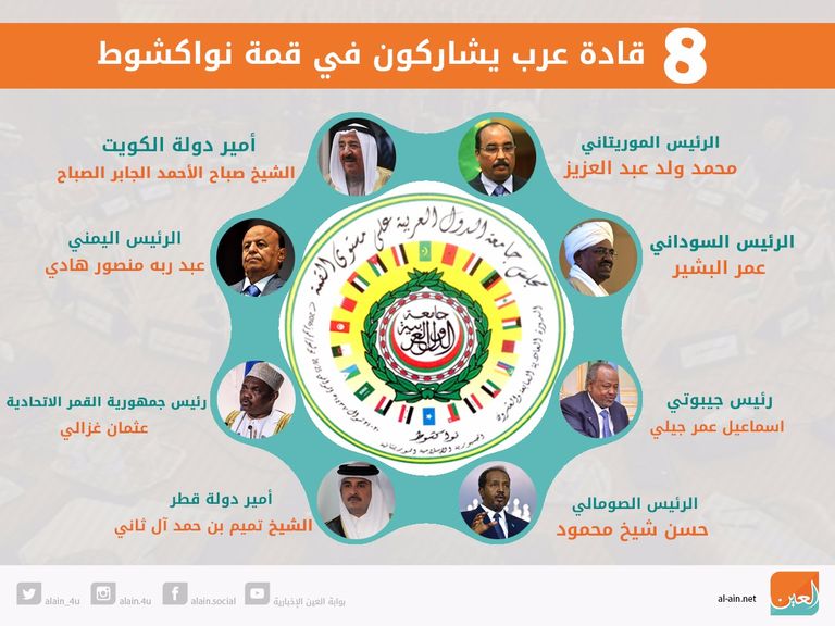 وترصد بوابة العين في الانفوجراف التالي الرؤساء والزعماء العرب المشاركين في قمة نواكشوط.