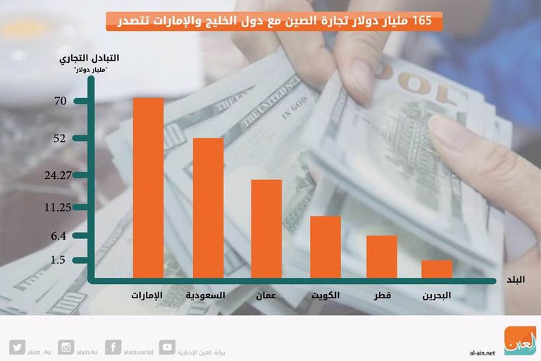 إنفوجراف.. 165 مليار دولار تجارة الصين مع دول الخليج والإمارات تتصدر