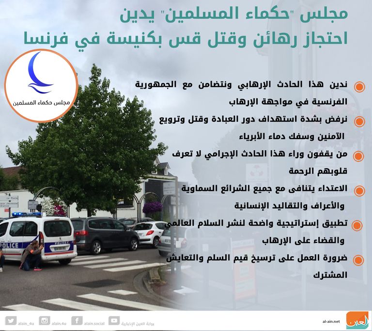 إنفوجراف.. "حكماء المسلمين" يدين الهجوم على كنيسة بفرنسا