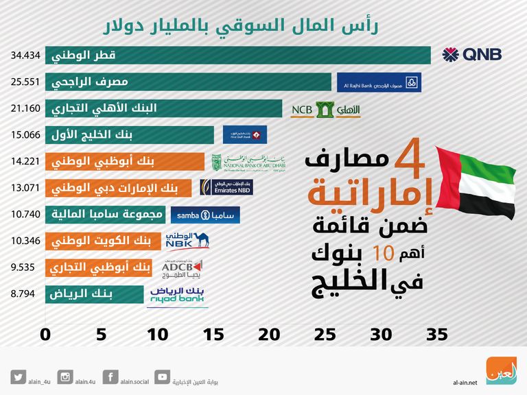 إنفوجراف.. قائمة أهم 10 بنوك خليجية