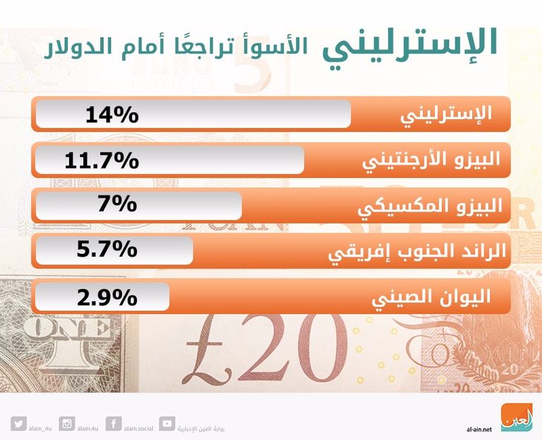 إنفوجراف.. الإسترليني أسوأ عملات العالم أمام الدولار