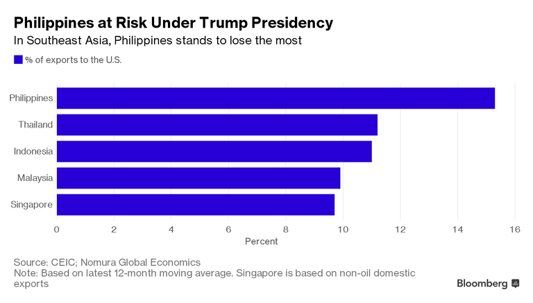 إذا فاز المرشح الجمهوري دونالد ترامب بالسباق على مقعد البيت الأبيض ستكون دول آسيا؛ لا سيما الصين وكوريا الجنوبية والفلبين الأكثر تضررًا، بحسب دراسة تحليلية عرضت نتائجها وكالة "بلومبرج".
