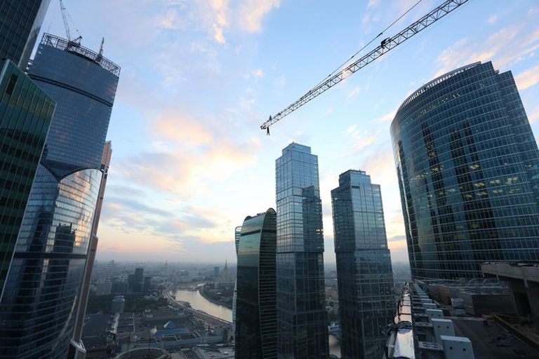 5- متسلق يتعلق في الحي المالي في موسكو دون أي وسيلة مساعدة.