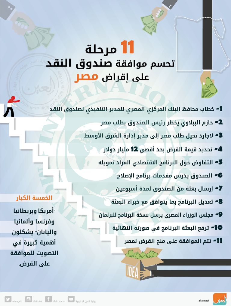 والإنفوجراف التالي يوضح المراحل التي ستمر بها مصر لحين حصولها على القرض: