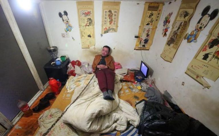 لم يجد شاب صيني طريقة للتخلص من إدمان الكحول -الذي انعكس سلبًا على سلوكه وتصرفاته- أفضل من ربط عنقه بسلسلة حديدية، وبقائه داخل غرفته.