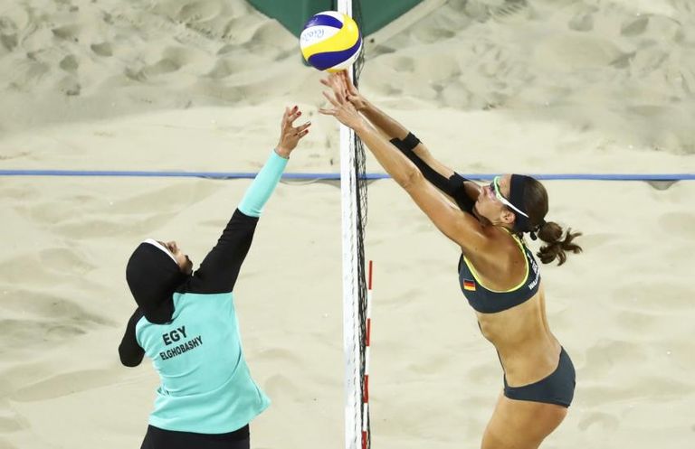 لأول مرة تشارك فتيات مصر في مسابقة الكرة الطائرة الشاطئية خلال الأوليمبياد.. وأمام نقص خبرتهن كان من المنطقي هزيمة المصريتين ندى معوض ودعاء الغباشي أمام الألمانيتين لورا لودفيج وكيرا فالكينهورست.