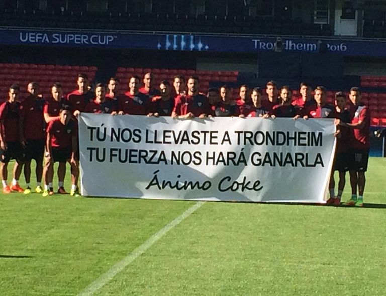 وفي لفتة طيبة، رفع لاعبو الفريق الأندلسي لافتة تحمل عبارة "أنت تسببت في وجودنا بترودنهايم.. قوتك منحتنا الفوز.. نتمنى الشفاء لك يا كوكي" وذلك قبل أداء المران مساء الإثنين استعدادًا لخوض مباراة السوبر الأوروبي التي يخوضها إشبيلية أمام مواطنه ريال مدريد.