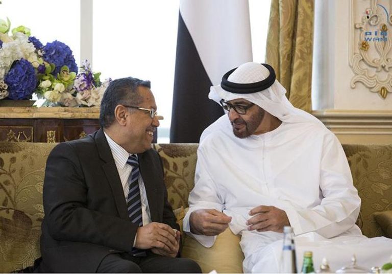 ورحب الشيخ محمد بن زايد برئيس الوزراء اليمني، وأشاد بمتانة العلاقات الأخوية القائمة بين دولة الإمارات العربية المتحدة والجمهورية اليمنية.