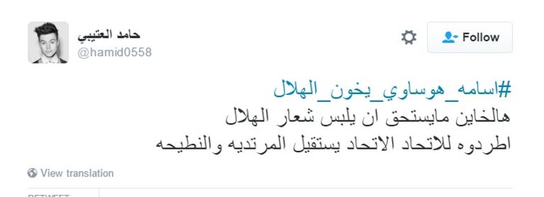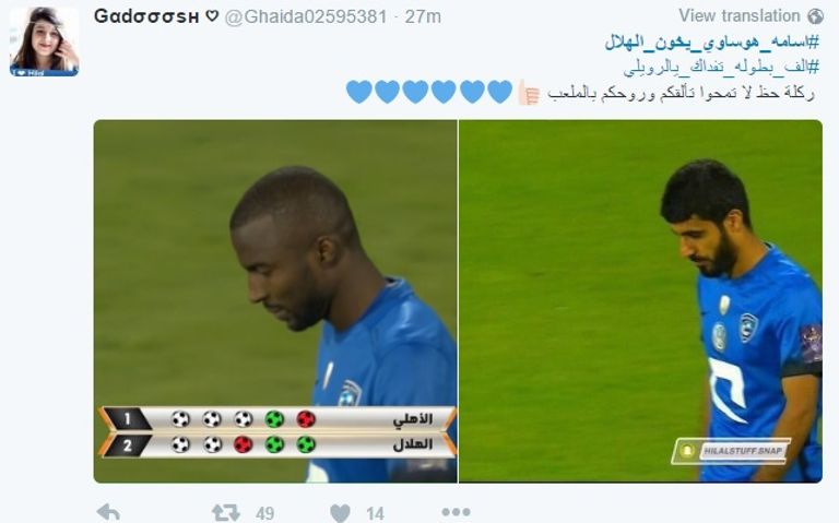 هذه الاتهامات عبرت عنها بعض من الجماهير الهلالية على موقع التواصل الاجتماعي "تويتر" عبر تدشين "هاشتاق" بعنوان "أسامة هوساوي يخون الهلال"، و"هاشتاق" آخر "المعيوف وأسامة خونة"، والسبب من وجهة نظرهم أن هوساوي تعمد إضاعة ركلة الجزاء، أما المعيوف فقد تساهل في صد ركلات الأهلي.