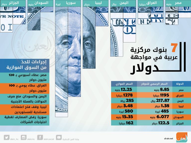 إنفوجراف.. 7 بنوك مركزية عربية في مواجهة السوق السوداء للدولار